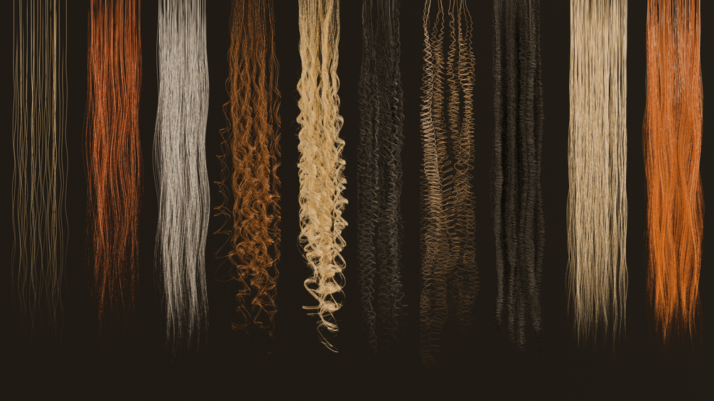 StrandKit includes more than 1,000 unique hair cards, categorized by hair type. Each hair type (1A to 4C) consists ofΒ five color options, four thickness levels, and four density values. And each one of those comes with a texture for diffuse, roughness, specularity, normals, start mask, and depth.